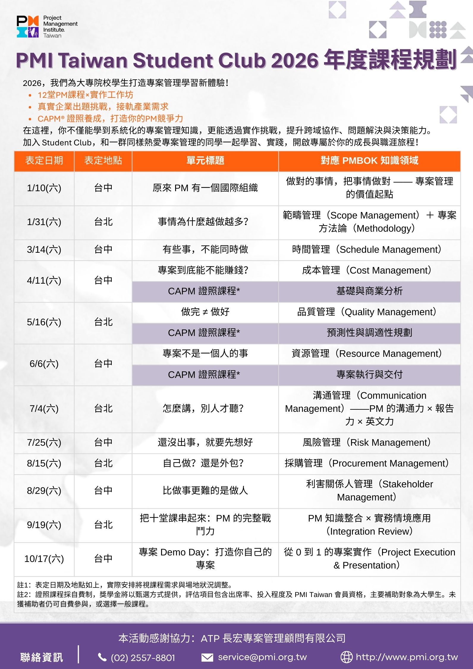PMI Taiwan Student Club 即將正式啟動,2026 年將推出一系列以大專院校學生為主要對象的專案管理學習活動,