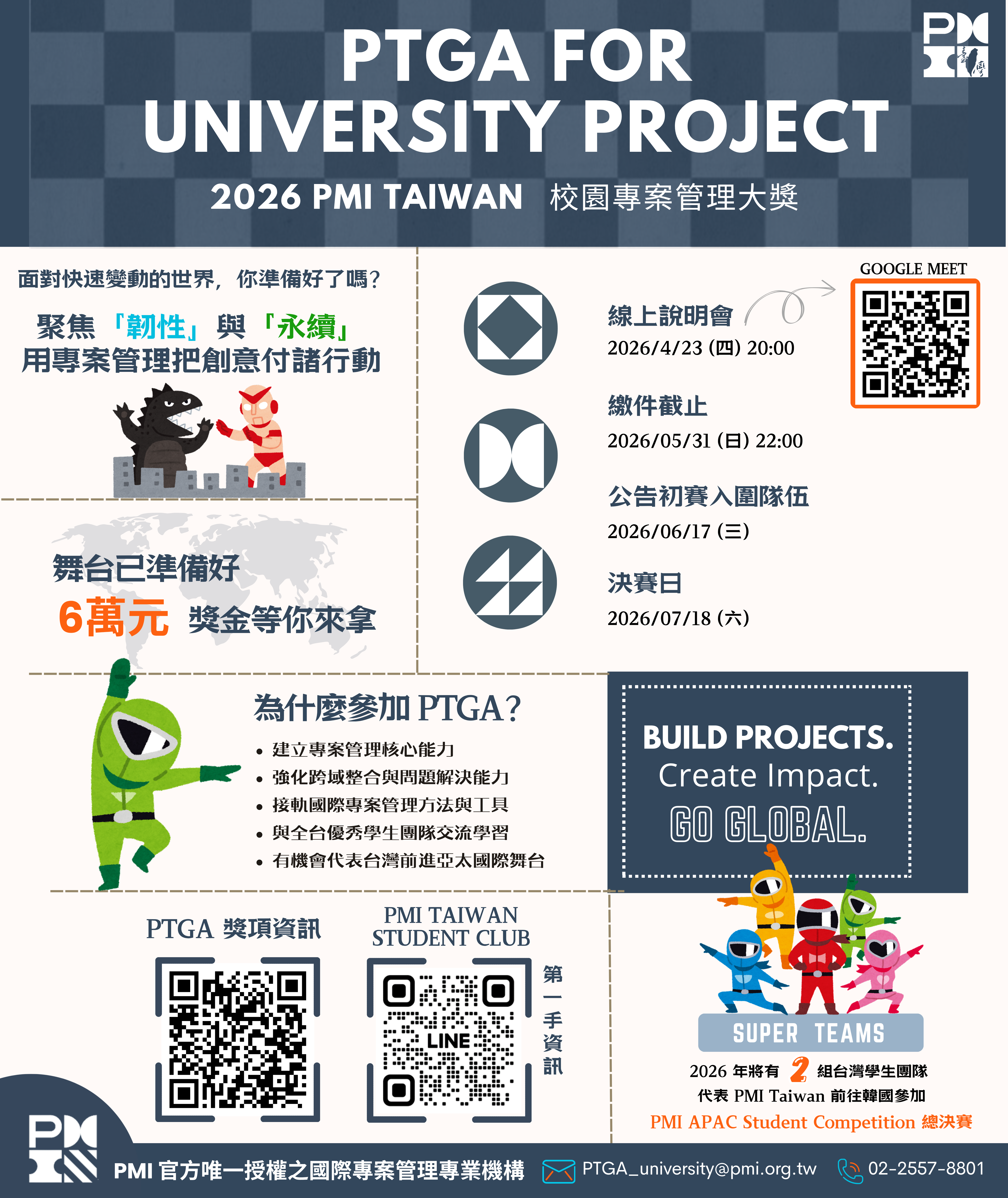 📍競賽詳情 https://www.pmi.org.tw/ptga-for-university-project/